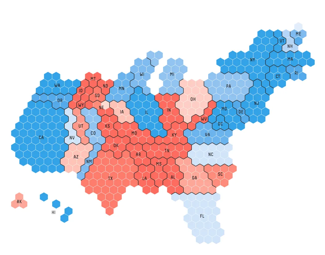 Hexbins in election coverage (Information is beautiful / fivethirtyeight)
