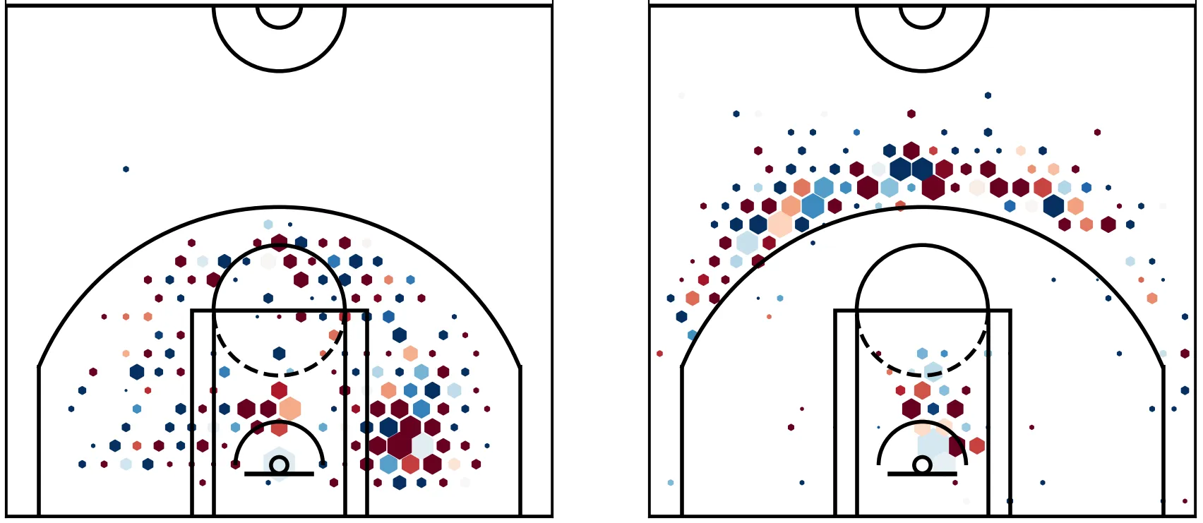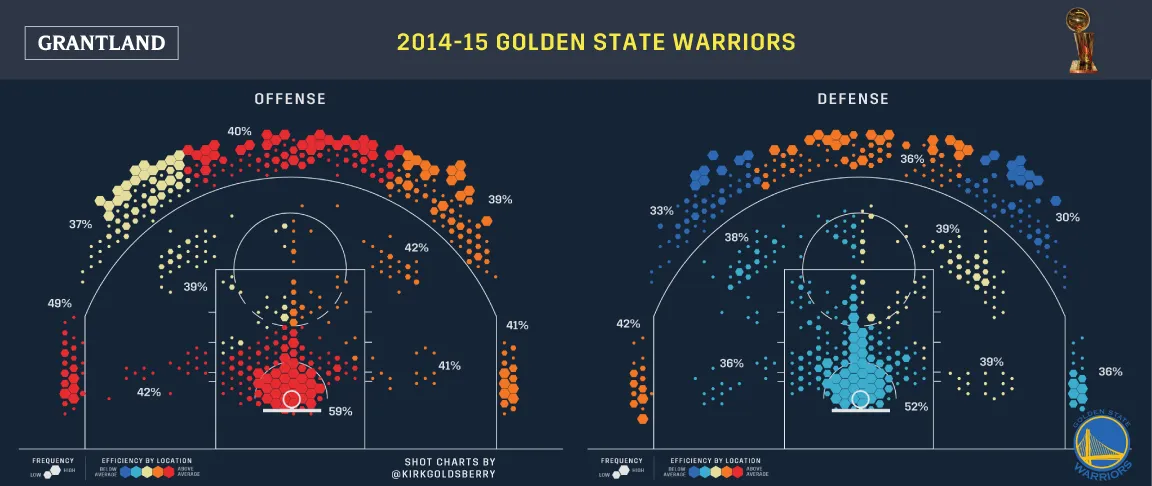 Personally, this is a bit of a tribute to the website Grantland (RIP), and Kirk Goldsberry. When I first saw these charts, I absolutely fell in love with their simplicity and visual power.